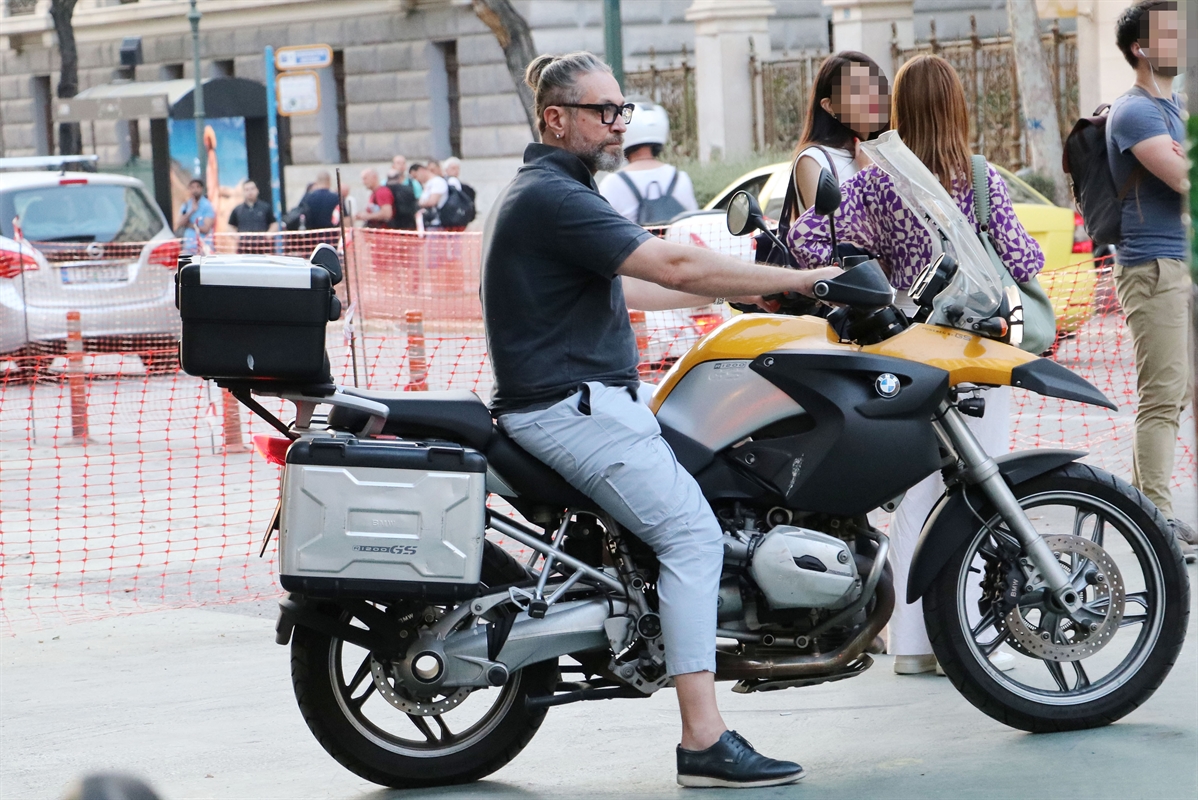 Ο ηθοποιός διαθέτει μια μηχανή μεγάλου κυβισμού καθώς είναι λάτρης αυτών και τον πετύχαμε στο κέντρο της Αθήνας. Ντυμένος casual με τα μαλλιά του να έχουν πλέον μακρύνει και να τα έχει πιασμένα κοτσίδα μικρή.