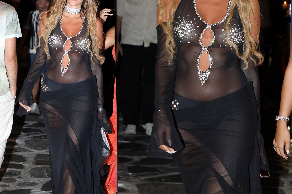 Φορώντας ένα φόρεμα εντελώς διάφανο με στο στήθος να καλύπτεται από στρας έκανε τις βόλτες της στα σοκάκια του νησιού των Ανέμων παρέα με φίλη της η σχεδιάστρια Irene Angelopoulos.