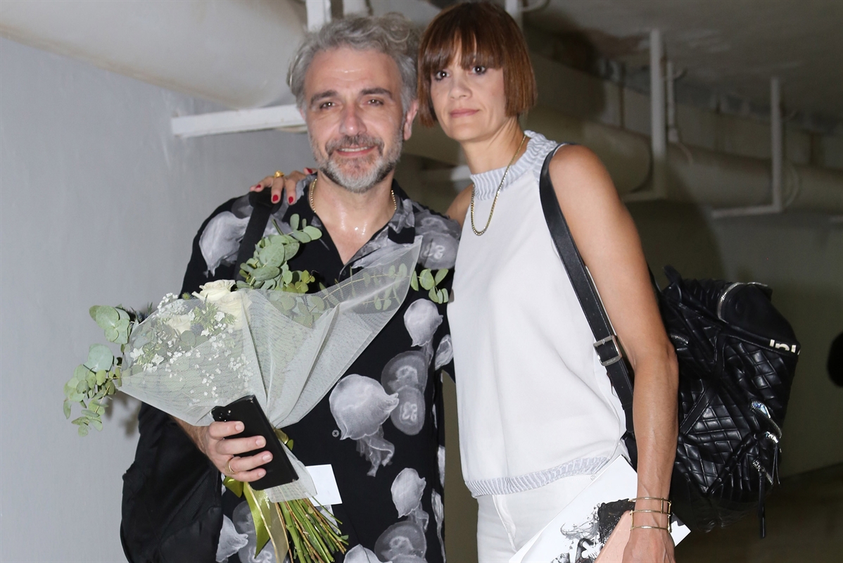 O ηθοποιός πρωταγωνιστεί στην παράσταση «Μήδεια του Ευριπίδη» και όταν εμφανίστηκαν στο Κατράκειο Θέατρο η σύζυγός του ήταν εκεί για να τον καμαρώσει. Μετά το τέλος της παράστασης πήγε να τον συγχαρεί δίνοντάς του και μία ανθοδέσμη και χαμογελαστοί πόζαραν στον φωτογραφικό μας φακό.