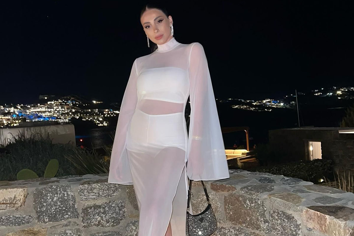 Η Βαλέρια Χοψονίδου ήταν ντυμένη με μια λευκή see-through ολόσωμη φόρμα που αναδείκνυε την ηλιοκαμένη επιδερμίδα της, ενώ ο σύντροφός της επέλεξε ένα total black look, με τα λευκά sneakers να κάνουν αντίθεση.