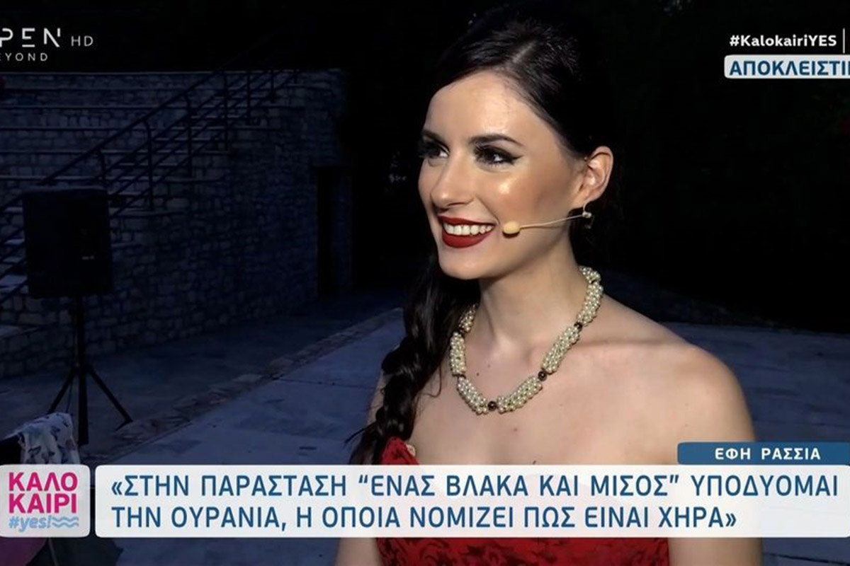 Η Έφη Ρασσιά, με αφορμή την συμμετοχή της στην θεατρική παράσταση «Ένας βλάκας και μισός», παραχώρησε μια συνέντευξη στην εκπομπή «Καλοκαίρι Yes». Η όμορφη ηθοποιός, μίλησε για το «Καφέ της Χαράς» αλλά και για τις παραστάσεις στην Επίδαυρο.