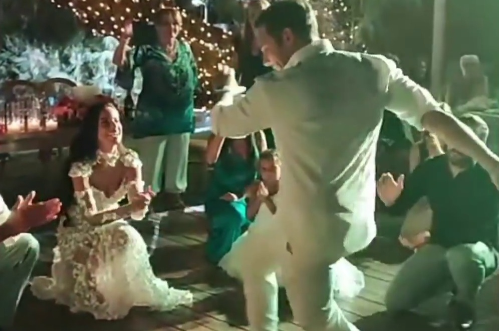 Στη συνέχεια ακολούθησε δεξίωση με πολύ χορό μέχρι τις πρώτες πρωινές ώρες. Ο γαμπρός μάλιστα χόρεψε ένα βαρύ ζεϊμπέκικο με την σύζυγό του να τον χειροκροτεί γεμάτη περηφάνια. Ο γάμος στον Ιερό Ναό Αγίου Νικολάου στο Λαγονήσι.