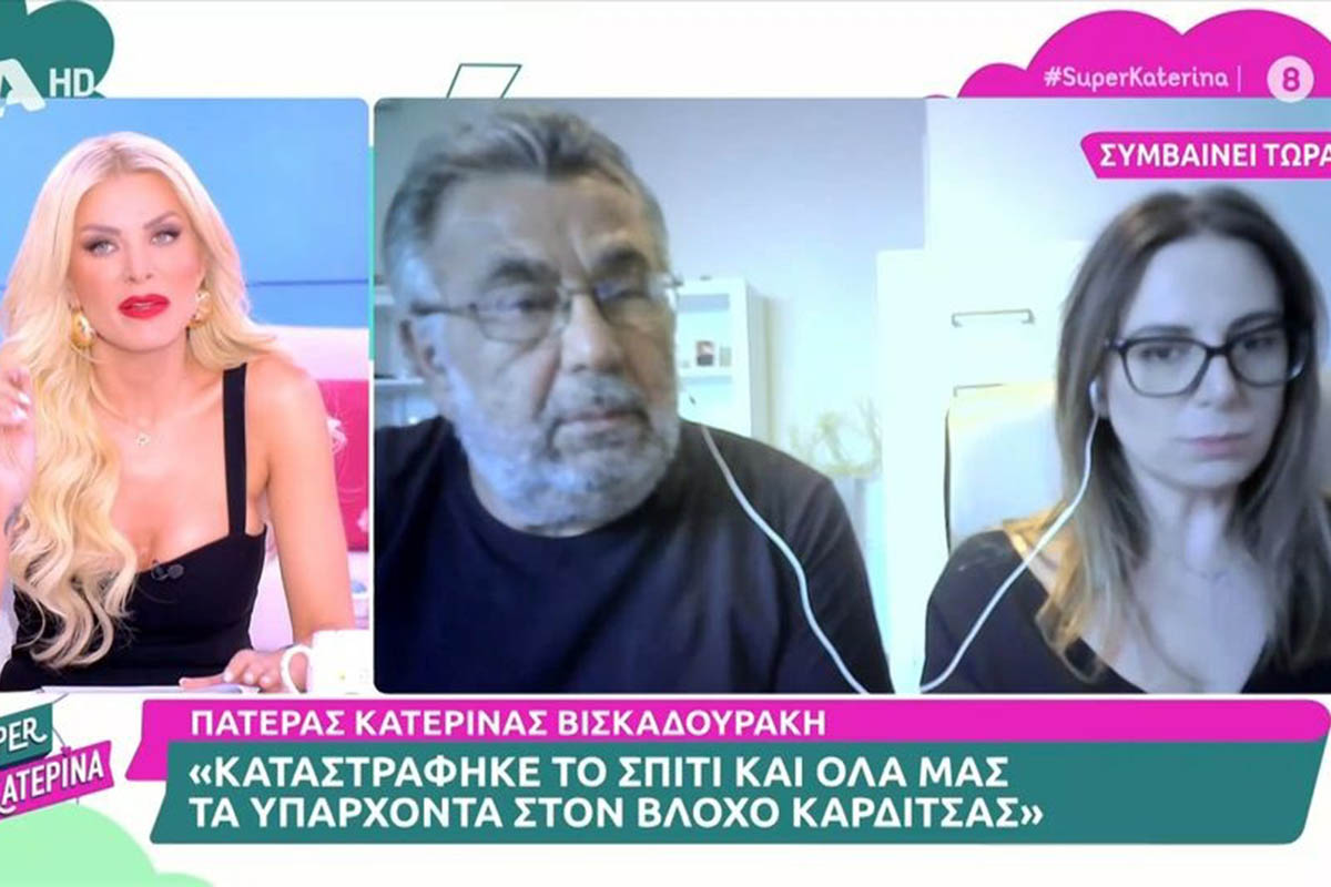 Στην εκπομπή «Super Κατερίνα», μίλησαν η σύζυγος του Θανάση Βισκαδουράκη, Κατερίνα Γιώτα μαζί με τον πατέρα της για τις καταστροφές στο χωριό τους, τον Βλοχό Καρδίτσας και όπως χαρακτηριστικά είπαν: «Δεν έχουν τίποτα ούτε αυτοκίνητο, ούτε σπίτι, ούτε ρούχα».