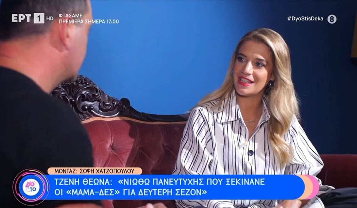 Με αφορμή την έναρξη της εκπομπής της, η Τζένη Θεωνά παραχώρησε μια συνέντευξη στην εκπομπή «Δύο στις Δέκα». Η γνωστή ηθοποιός, μέσα σε όλα, αναφέρθηκε στην μητρότητα αλλά και στην εκπομπή της «Μαμά-δες».