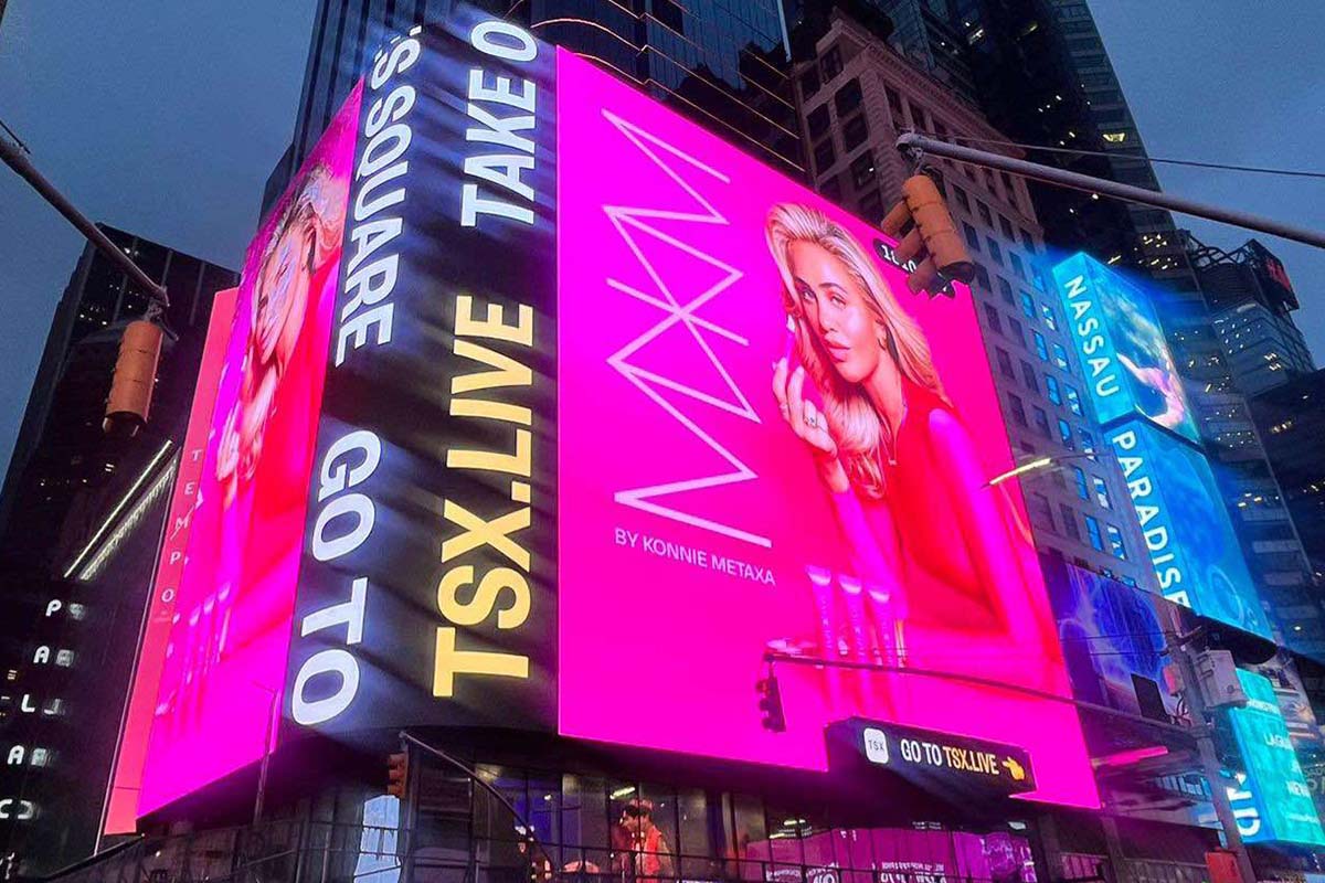Σε πελάγη ευτυχίας, πλέει η Konnie Metaxa, η οποία, άκρως συγκινημένη, θέλησε να μοιραστεί την χαρά της, και με τους διαδικτυακούς της φίλους, λίγη ώρα μετά, αφού τεράστια αφίσα, με το πρόσωπό της, κρατώντας στα χέρια της ένα lip gloss, βρέθηκε να φιγουράρει, σε δύο τεράστια σημεία, στο billboard, το κέντρο του κόσμου, στην Times Square της Νέας Υόρκης.