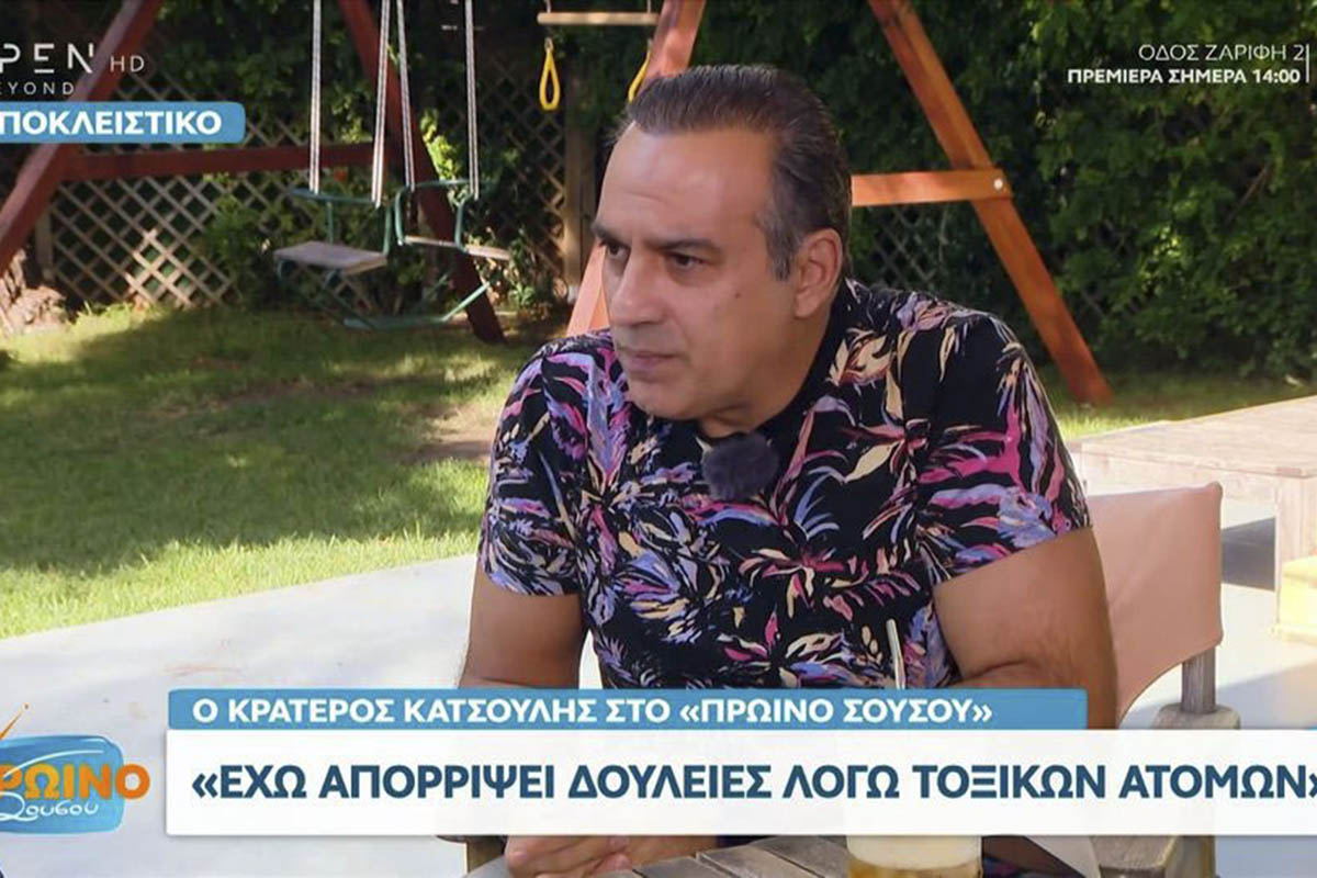 Στην αρχή της συνέντευξης ο Κρατερός Κατσούλης αναφέρθηκε στις τοξικές συνεργασίες που του έχουν τύχει: «Όταν υπάρχει ενσυναίσθηση, διάθεση και αντίληψη μπορείς να κάνεις πράγματα. Το εάν θα συνεχίσεις κάπου ή όχι έχει να κάνει με τις συνεργασίες. Τα τελευταία 34 χρόνια που υπάρχω στο χώρο της τηλεόρασης ή του θεάτρου πάντα ρωτούσα με ποιους θα συνεργαστώ. Έχω απορρίψει δουλειές λόγω τοξικών ανθρώπων.