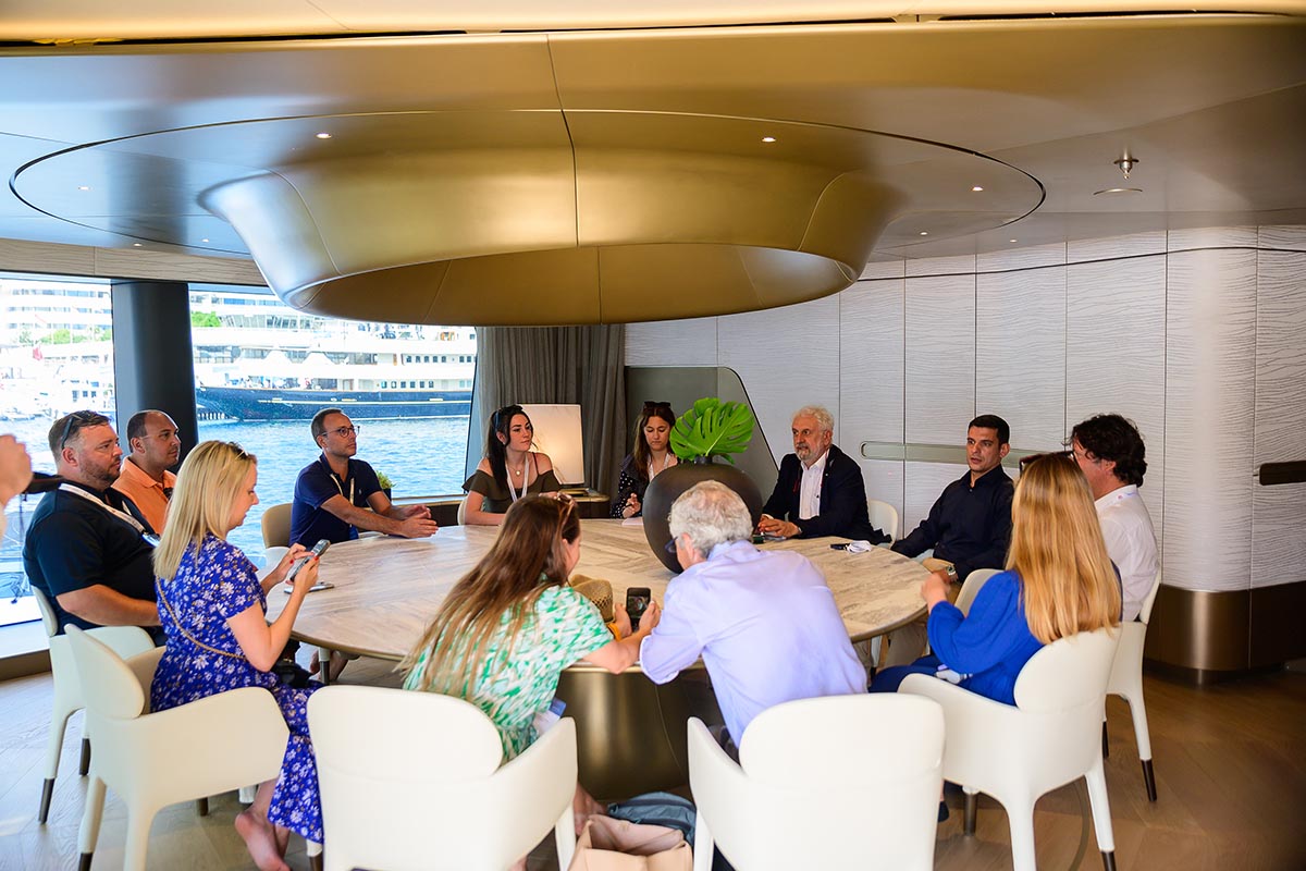 Ο εμπνευστής του premium in-water show έδωσε στη συνέχεια τον λόγο στον ιδιοκτήτη της Olympic Marine Γιώργο Προκοπίου, ο οποίος, μεταξύ άλλων, εξήρε το έργο των Ελλήνων κατασκευαστών.