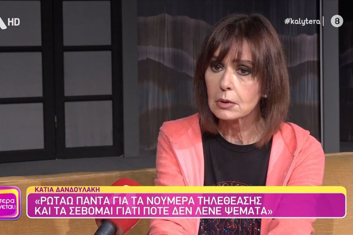 Η Κάτια Δανδουλάκη, παραχώρησε μια συνέντευξη στην εκπομπή «Καλύτερα δε γίνεται». Η γνωστή ηθοποιός, μεταξύ άλλων, αναφέρθηκε στην θρυλική σειρά «Λάμψη», στην Αλίκη Βουγιουκλάκη αλλά και στα νούμερα τηλεθέασης.