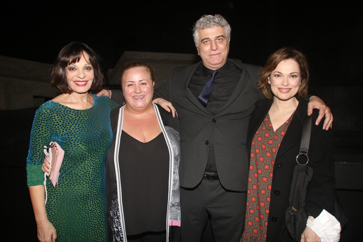 Μετά το τέλος της παράστασης το ζευγάρι πόζαρε με τις δύο συναδέλφους του στον φωτογραφικό μας φακό. «Στα γυρίσματα περνάμε πολύ ωραία. Η Παρθένα έχει την ίδια αφοσίωση με μένα στη δουλειά.
