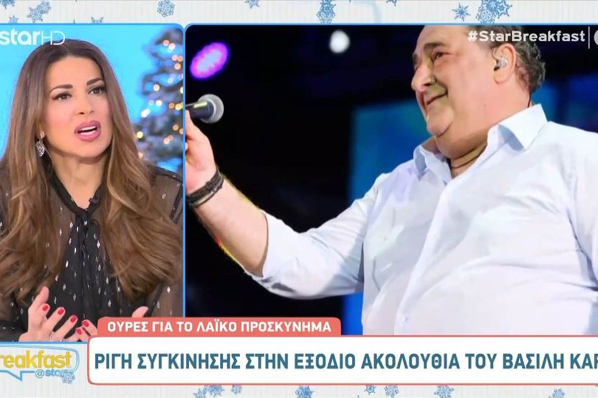 Η γνωστή παρουσιάστρια ανέφερε: «Ο Βασίλης Καρράς ήταν ένας λαϊκός τραγουδιστής αλλά ένωνε όλα τα είδη της μουσικής. Όλοι είχαν να πουν έναν καλό λόγο, και εκεί φάνηκε ότι η μουσική δεν έχει σύνορα. Θα μας λείψει πάρα πολύ σε όλα τα επίπεδα. Εμείς είχαμε συνεργαστεί πριν κάνω το “Χειρότερα”, οπότε ήταν σίγουρα πριν το 2013. το 10-11 νομίζω.