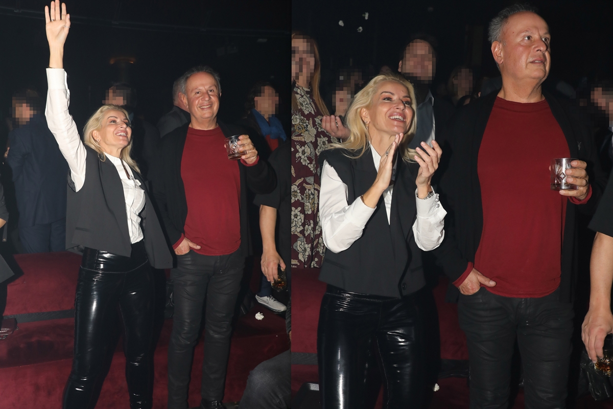 Το ζευγάρι επέλεξε να διασκεδάσει στο νυχτερινό κέντρο «Nox» που εμφανίζεται ο κουμπάρος του, Αντώνης Ρέμος με την Ελένη Φουρέιρα. Όλο το βράδυ η παρουσιάστρια ήταν όρθια, χόρευε και τραγουδούσε παρέα με τον σύζυγό της.