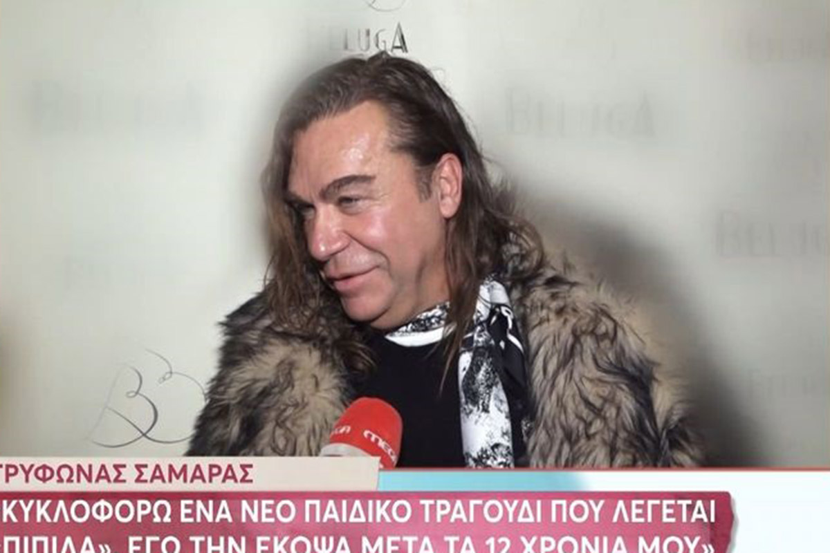 Σε βραδινή έξοδο πέτυχε τον Τρύφωνα Σαμαρά η κάμερα της εκπομπής «Mega Καλημέρα» και του απέσπασε δηλώσεις. Ο γνωστός κομμωτής, μεταξύ άλλων, αποκάλυψε πως κυκλοφορεί ένα παιδικό τραγούδι, αλλά και την ηλικία που εκείνος «έκοψε» την πιπίλα.
