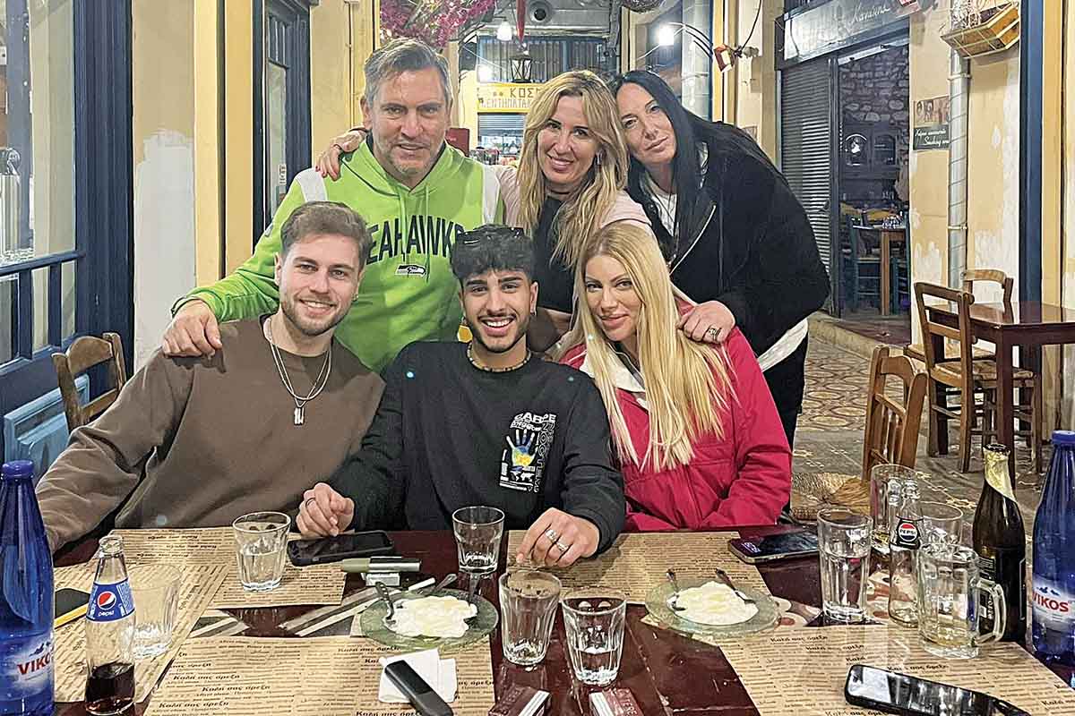 Οι δύο άντρες, που είναι ζευγάρι και δεν το κρύβουν, απόλαυσαν μεζεδάκια και καλό κρασί παρέα με τον γνωστό pr-man Μάνο Κατσαμπούρη, την τραγουδίστρια Ελενα Γκρέκου και τη αθλήτρια Πηγή Δεβετζή. Φυσικά, δεν παρέλειψαν να βγάλουν όλοι μαζί μια αναμνηστική φωτογραφία, στην οποία εμφανίζεται και η επιχειρηματίας του χώρου, Αντωνία.