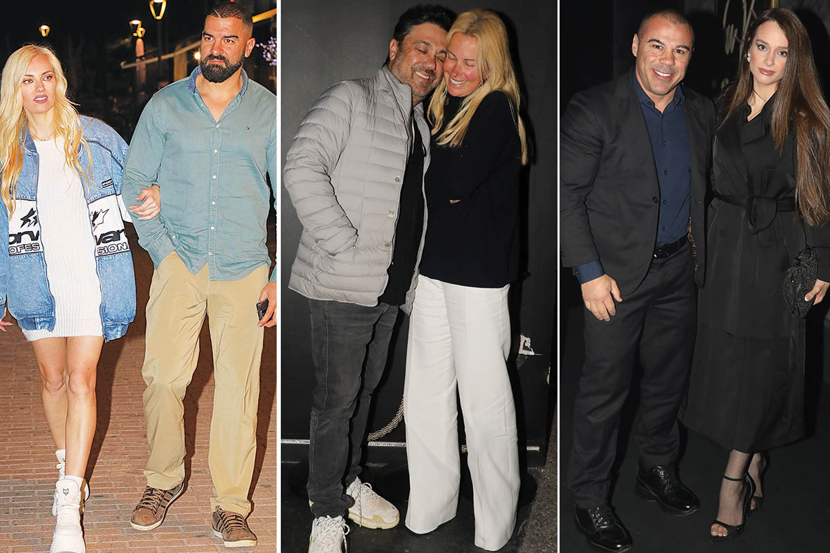 Στην ίδια μουσική σκηνή εντοπίστηκαν να διασκεδάζουν το ίδιο βράδυ ο Γιώργος Θεοφάνους και η σύζυγός του Βίλλυ, οι οποίοι μετρούν 15 χρόνια κοινής πορείας και έχουν τρία παιδιά, τον Εμμανουήλ, την Ειρήνη-Ευγενία και την Κύρα. Τέλος, τον Πάνο Μουζουράκη επί σκηνής απόλαυσε και ο Μιχάλης Ζαμπίδης με τη γυναίκα του Μαρία Καρολίνα Ντάσιου.