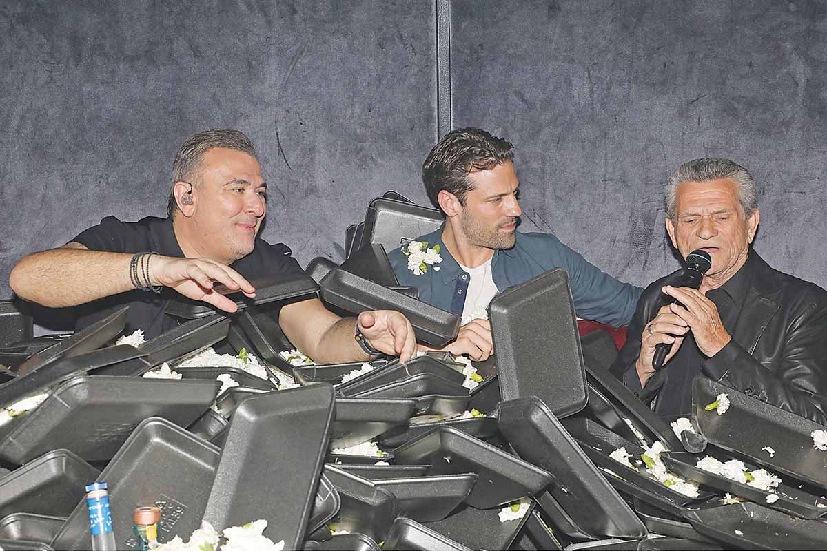 Τη συγκεκριμένη βραδιά, ωστόσο, τα φλας μονοπώλησε ο άντρας του μουσικού σχήματος, ο οποίος έδωσε το μικρόφωνο στους δύο σταρ καλεσμένους του, αρχικά στον Κωνσταντίνο Αργυρό, με τον οποίο έκαναν ντουέτο, και έπειτα στον Γιώργο Μαργαρίτη, που άναψε το κέφι περισσότερο! Οπως ήταν φυσικό, τα γαρίφαλα έπεσαν… βροχή, με τους τρεις καλλιτέχνες να αποθεώνονται και σχεδόν να καλύπτονται από τα πανέρια!