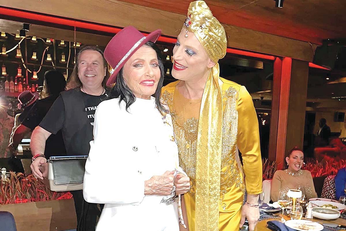 Συνοδευόμενη από τον σύντροφό της Πύρρο Αναγνωστόπουλο και τη στενή φίλη και συνεργάτιδά της Σταυρίνα Ευστρατιάδη, η «βασίλισσα της νύχτας» απόλαυσε τον δημοφιλή performer να τη μιμείται φορώντας ένα δικό της κοστούμι, που του χάρισε εκείνη πριν από καιρό. Θέλοντας μάλιστα να τον ευχαριστήσει που την τιμά με τις αναφορές του στις παραστάσεις του, του έκανε δώρο ακόμη ένα φουστάνι της την εν λόγω βραδιά, εκπλήσσοντάς τον ευχάριστα.