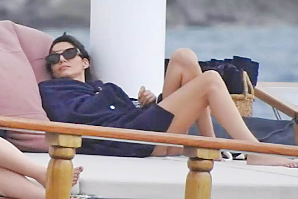 Η κάμερα του Mykonos Live TV την απαθανάτισε πάνω στο σκάφος να χαλαρώνει στην ξαπλώστρα κοιτώντας το κινητό της, να βγάζει φωτογραφίες και να συζητάει με τις φίλες της. Κατά την αποβίβασή της έπεσε πάνω στους φωτογράφους, τους οποίους χαιρέτησε και στους οποίους πόζαρε χαμογελαστή.