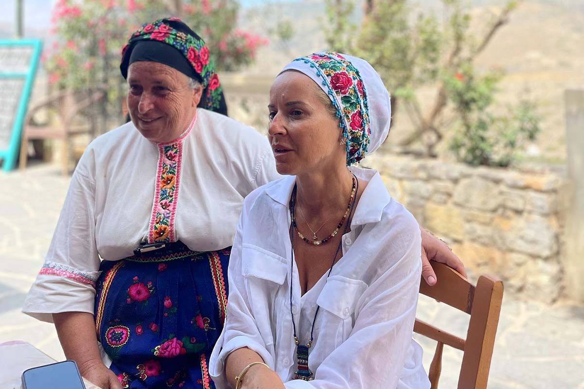Εκεί, μπροστά στα μάτια μου, γέμιζε η μαγείρισσα τους φρέσκους κολοκυθοανθούς, λέγοντάς μου τα μυστικά για να γίνουν αφράτοι και μοσχομυριστοί. Εκεί οι γυναίκες κεντούν τον χειμώνα περιμένοντας τους επισκέπτες το καλοκαίρι, που καταφτάνουν από κάθε μεριά του πλανήτη γυρεύοντας να αγοράσουν τα υπέροχα δημιουργήματά τους» σχολίασε, μεταξύ άλλων, η παρουσιάστρια σε ένα post που έκανε στο Instagram, δημοσιεύοντας και φωτογραφίες της ίδιας με παραδοσιακή φορεσιά.
