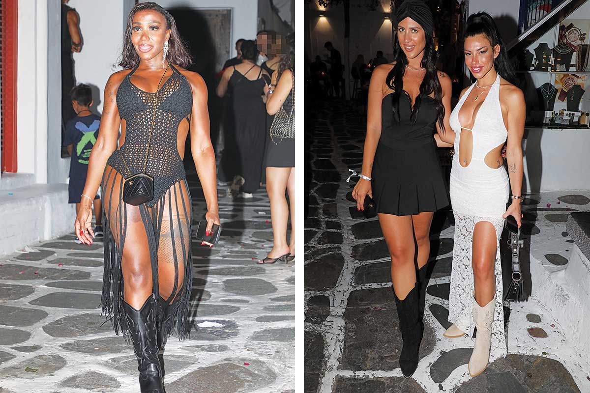 Στο μεταξύ, τα κοσμικά Ματογιάννια «αναστέναξαν» πριν από μερικά βράδια, όταν τα περπάτησαν η Ελίζαμπεθ Ελέτσι και η Ειρήνη Στεριανού. Η «μαύρη γαζέλα» της ελληνικής showbiz και η καλλονή πρώην παίκτρια του «Greece’s Next Top Model» και νυν ηθοποιός «έσκασαν μύτη» στα μυκονιάτικα δρομάκια με άκρως αποκαλυπτικά outfits, προκαλώντας έτσι… χαλασμό στο πέρασμά τους.