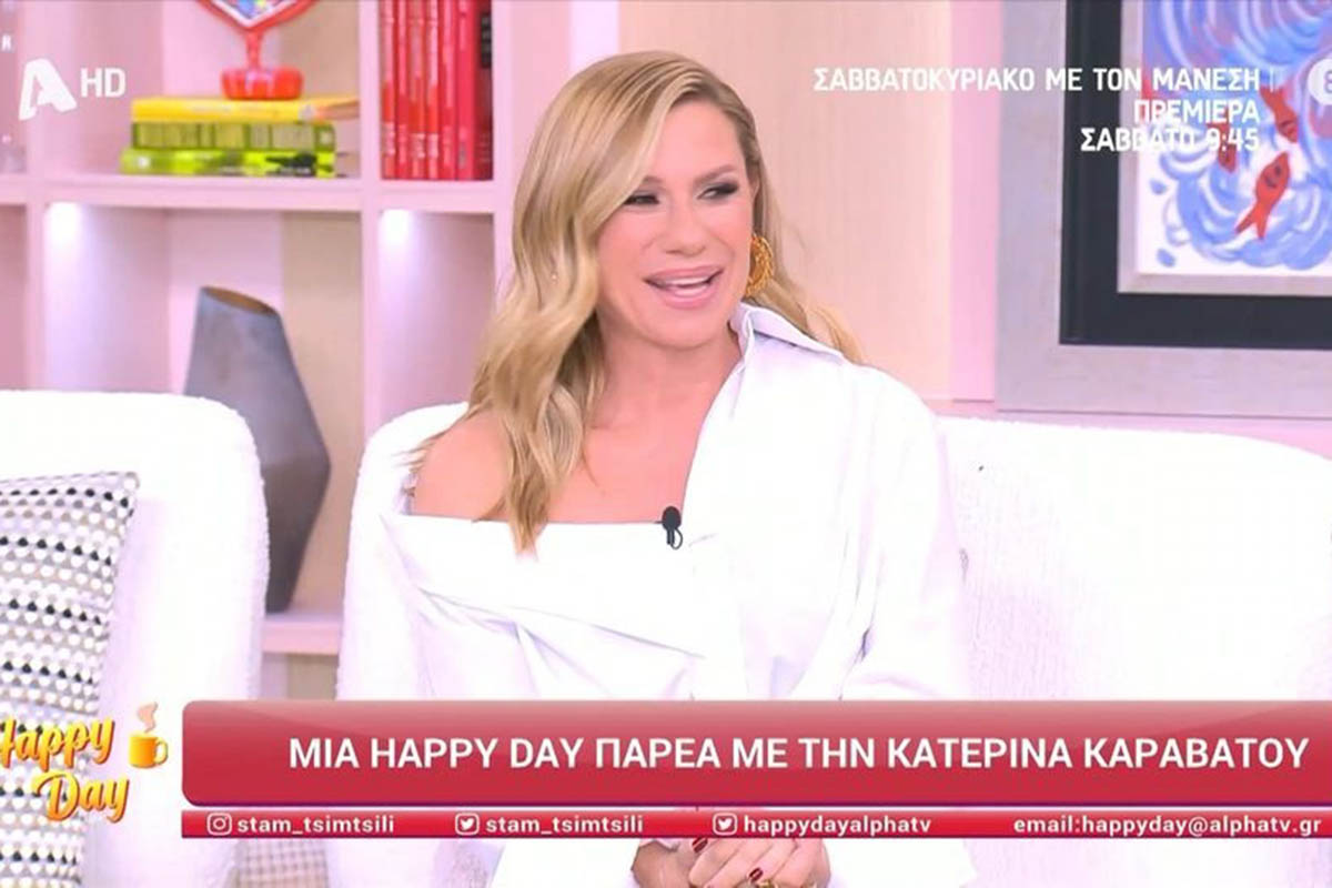 Η Κατερίνα Καραβάτου κάθισε στον καναπέ της εκπομπής «Happy Day» και παραχώρησε μια συνέντευξη. Η δυο παρουσιάστριες συναντήθηκαν για πρώτη φορά σε πλατό εκπομπής και ας γνωρίζονται χρόνια. Μεταξύ άλλων, η Κατερίνα Καραβάτου αναφέρθηκε στα δυο ριάλιτι που παρουσιάζει, αλλά και στο πως διαχειρίζεται τα αρνητικά σχόλια που δέχεται.