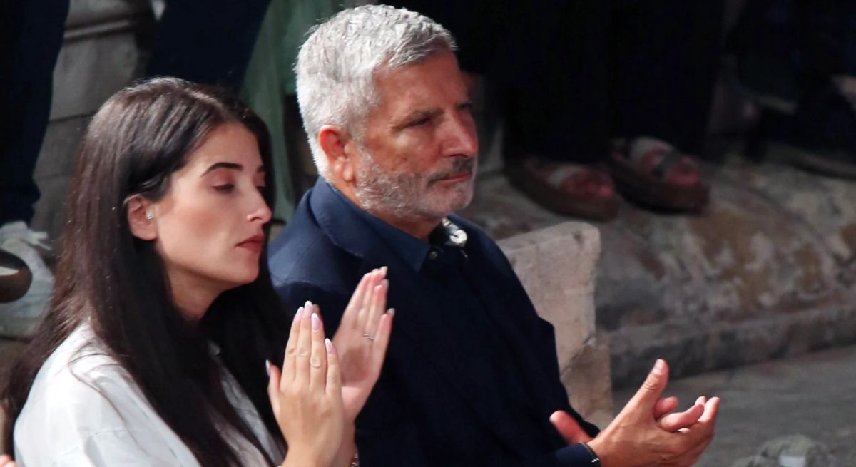 Η εγκυμονούσα σύντροφός του Νάνσυ Κοιλού, λίγες μέρες πριν από τον γάμο τους και ενώ μετρούν αντίστροφα για τη γέννηση του παιδιού τους, κάθισε δίπλα του και τα βλέμματα έπεσαν, φυσικά, πάνω της.