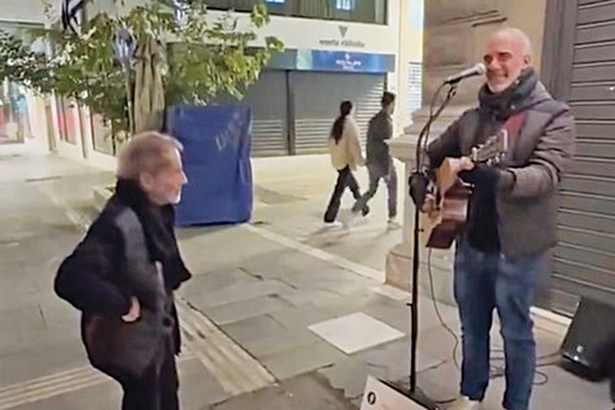 Οταν ολοκλήρωσε το τραγούδι, ο Σταύρος Ξαρχάκος με τεράστιο σεβασμό τον πλησίασε και τον αγκάλιασε! Ο μουσικός έσκυψε -καθώς βρισκόταν σε ένα υπερυψωμένο τοιχίο- και ανταπέδωσε την αγκαλιά περιχαρής, ενώ αντάλλαξαν με τον μουσικοσυνθέτη μερικά λόγια, προτού εκείνος συνεχίσει τη βόλτα του με την παρέα του. Το βίντεο, που αναρτήθηκε στα social media, έχει γίνει viral τις τελευταίες ώρες, με χρήστες του X (πρώην twitter) να σχολιάζουν την κίνηση του Σταύρου Ξαρχάκου. «Μια ωραία στιγμή στον ζόφο που μας περικυκλώνει» ανέφερε ένας χρήστης, ενώ άλλος επισήμανε: «Αυτά να τα δουν οι influencers και οι απόπατοι της trap για να καταλάβουν τι είναι ο πολιτισμός και ποιος είναι ο μεγάλος Ξαρχάκος που τον εκπροσωπεί».