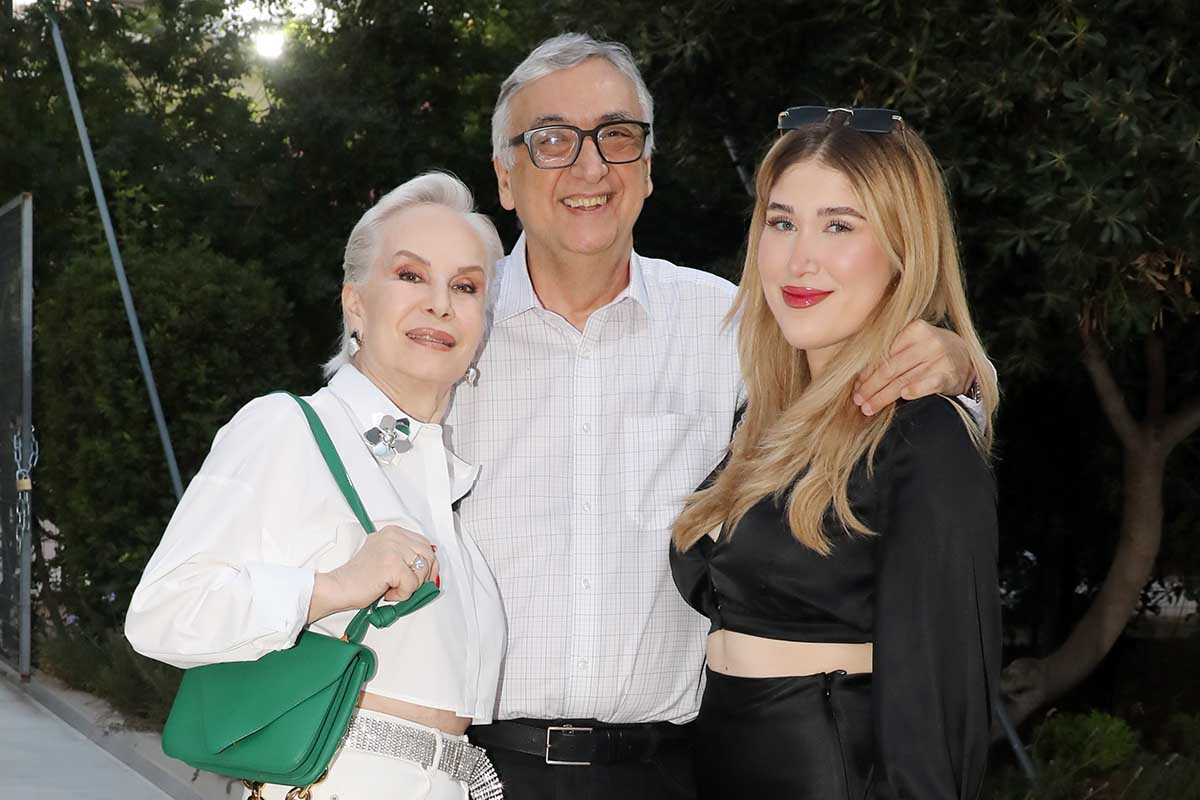 O Δημήτρης Σούρας με τη λατρεμένη του σύζυγο Ελένη Μαρούδα και την κούκλα κόρη τους.