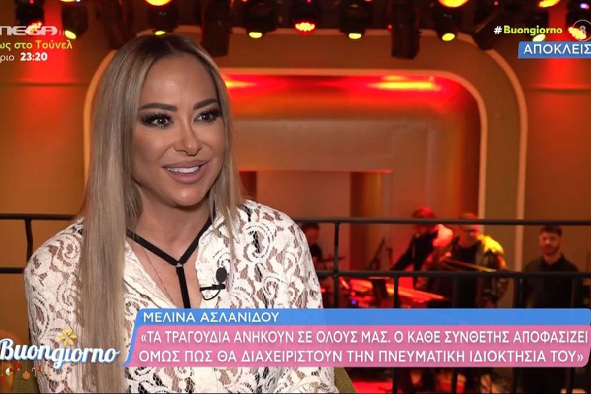 Η Μελίνα Ασλανίδου παραχώρησε μια συνέντευξη στην εκπομπή Buongiorno. Η γνωστή τραγουδίστρια, μεταξύ άλλων, αναφέρθηκε στην προσωπική της ζωή, στο νέο της τραγούδι, αλλά και στο ενδεχόμενο να επιστρέψει στην τηλεόραση.