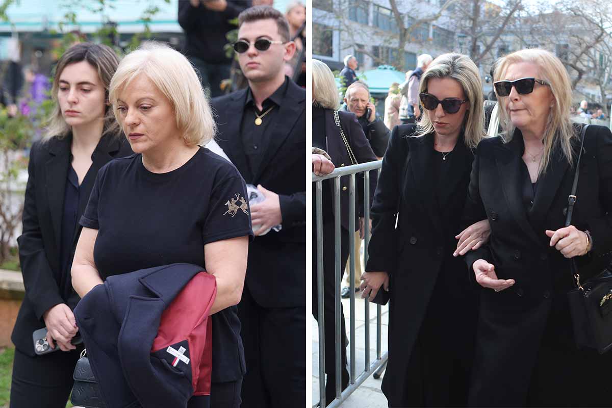 Με δάκρυα στα μάτια αλλά και με περηφάνια για τον «στρατηγό» τους αποχαιρέτησαν τον Μίμη Δομάζο οι δικοί του άνθρωποι, με την αγάπη του κόσμου να τους δίνει κουράγιο. Υποβασταζόμενη και δακρυσμένη η γυναίκα της ζωής του, Ηω, είπε το τελευταίο «αντίο» στον άνθρωπο της ζωής της, με τον οποίο πέρασε 40 ολόκληρα χρόνια. Μαζί με την κόρη της, Πόπη Δομάζου, κατέφτασε στη Μητρόπολη Αθηνών, κρατώντας η μία την άλλη, με τον κόσμο να τους συμπαραστέκεται στο πένθος τους. Τον αγαπημένο της πατέρα αποχαιρέτησε και η πρώτη κόρη του από τον γάμο του με τη Βίκυ Μοσχολιού, Ράνια, μαζί με τα παιδιά της, Στέλιο και Βίκυ, αλλά και η δεύτερη κόρη του από τον ίδιο γάμο, Ευαγγελία.