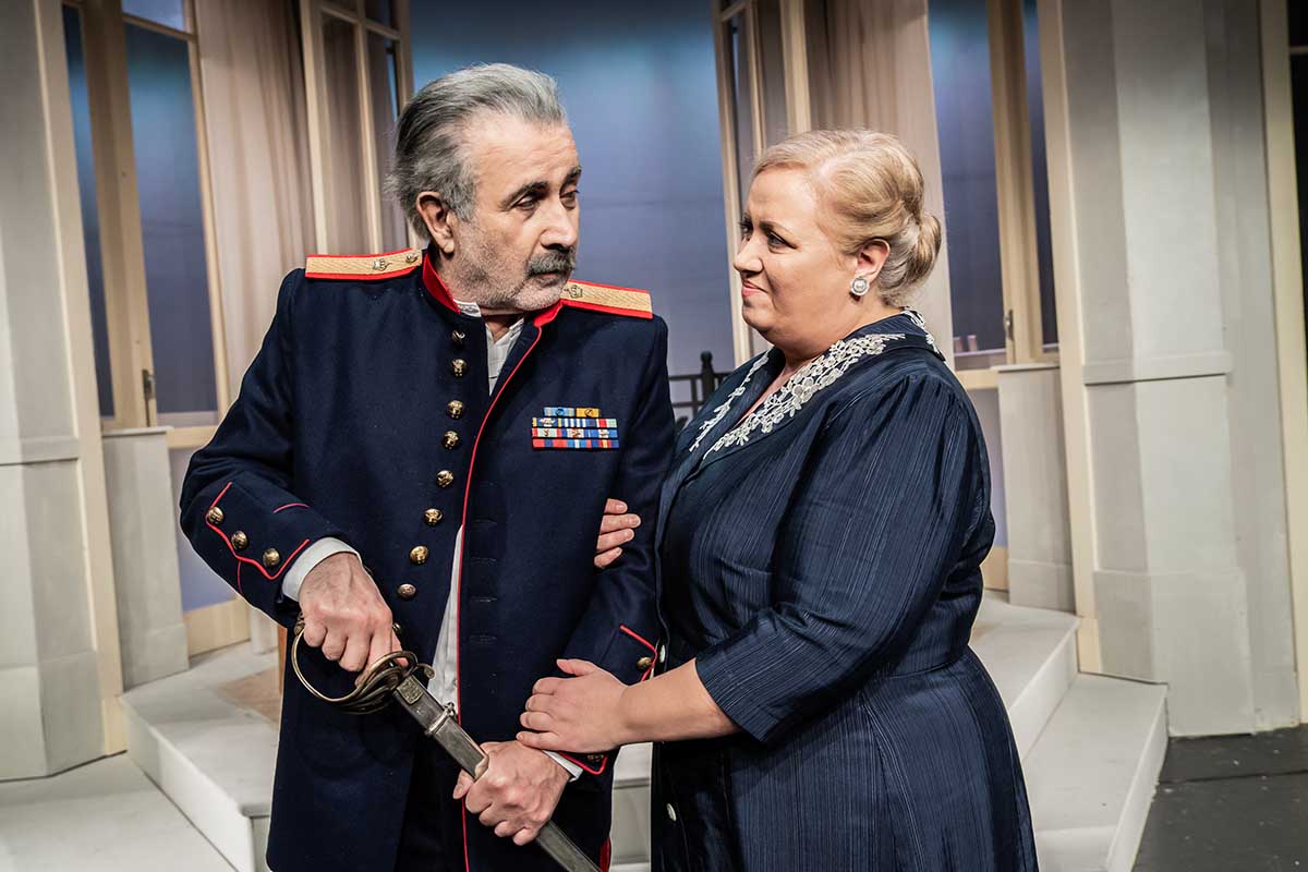Μαζί του θα εξορμήσουν ηρωικά οι Παύλος Ορκόπουλος, Παρθένα Χοροζίδου, Τάσος Παλαντζίδης, Σταύρος Μαρκάλας, Κωνσταντίνος Τραφαλής, Θράσος Σταθόπουλος, Ιωάννα Ανεμογιάννη, Κωνσταντίνος Γιάννης, Φαίδρα Σκλήρη, Λαζάρια Σαζεΐδου. Το «Ενας ήρωας με παντούφλες» γράφτηκε από τους Αλέκο Σακελλάριο και Χρήστο Γιαννακόπουλο το 1947, στη διάρκεια του Εμφυλίου Πολέμου, μετά την Κατοχή και τον Β’ Παγκόσμιο Πόλεμο. Αποτελεί μια γενναία απόπειρα των συγγραφέων να αναδείξουν την ευγενική πλευρά της πατρίδας, αυτή των ηρώων και καλών ανθρώπων, που κρύβεται μέσα στο σκοτάδι της εποχής. Η θεατρική εκδοχή του «Ηρωα με τις παντούφλες» μάς δείχνει ότι το έργο παραμένει πεισματικά παρόν, καθώς υπάρχουν και σήμερα τίμιοι άνθρωποι αλλά και… απατεώνες!