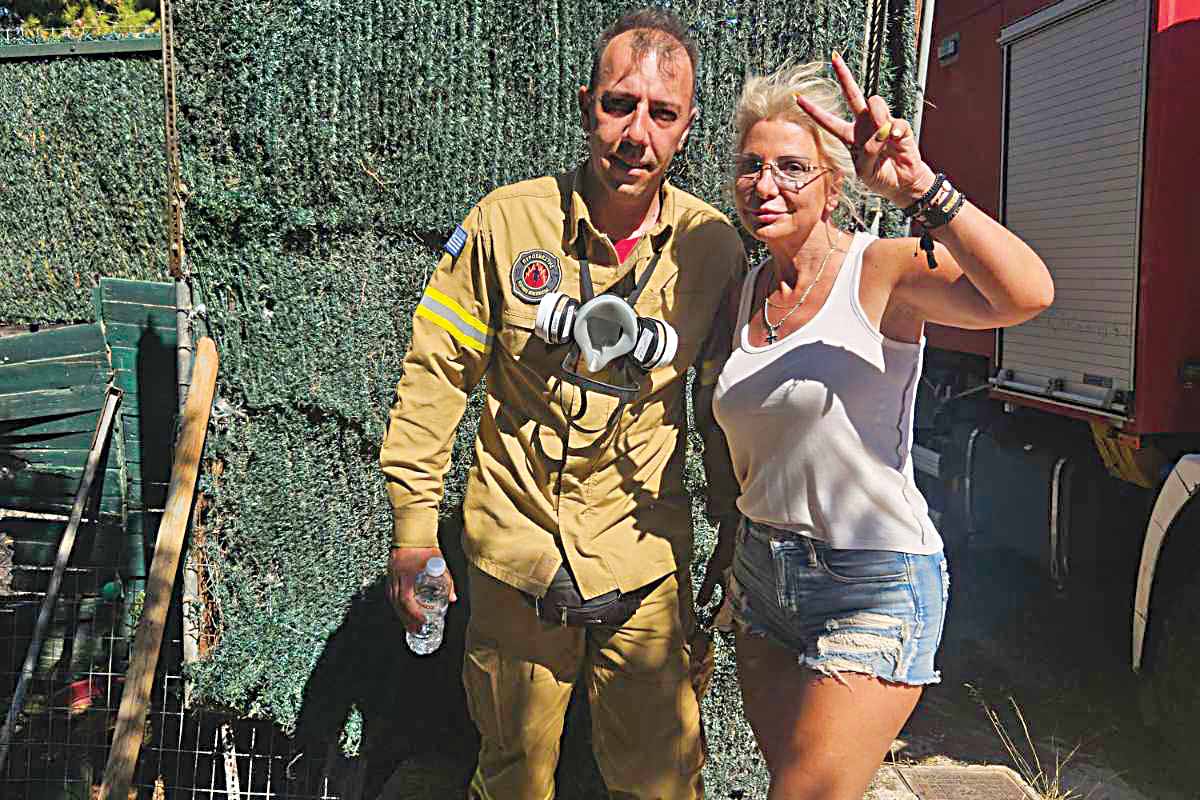 «Ηταν μεσημέρι, γύρω στη μία, όταν ένιωσα ξαφνικά έντονη ζέστη και βγαίνοντας από το σπίτι του κτήματος είδα μαύρους καπνούς σε κοντινή απόσταση» μας λέει η ίδια, περιγράφοντας τις δραματικές ώρες που έζησε. Αμέσως επικοινώνησε με τον άντρα της, που ήταν στη δουλειά του, και μέσα σε δέκα λεπτά που έκανε εκείνος να σπεύσει για βοήθεια η φωτιά «έγλειφε» ήδη την αυλή τους.
