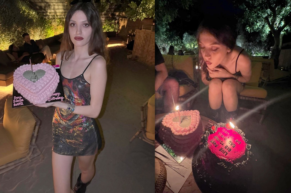 Ντυμένη ροκ με ένα μίνι φόρεμα, συνδυασμένο με μπότες πόζαρε στον φωτογραφικό φακό. Έσβησε κεράκια σε δύο τούρτες με τη μια να γράφει πάνω: «Ζήσε γρήγορα, πέθανε νέα. Τα κακά κορίτσια το κάνουν καλά».