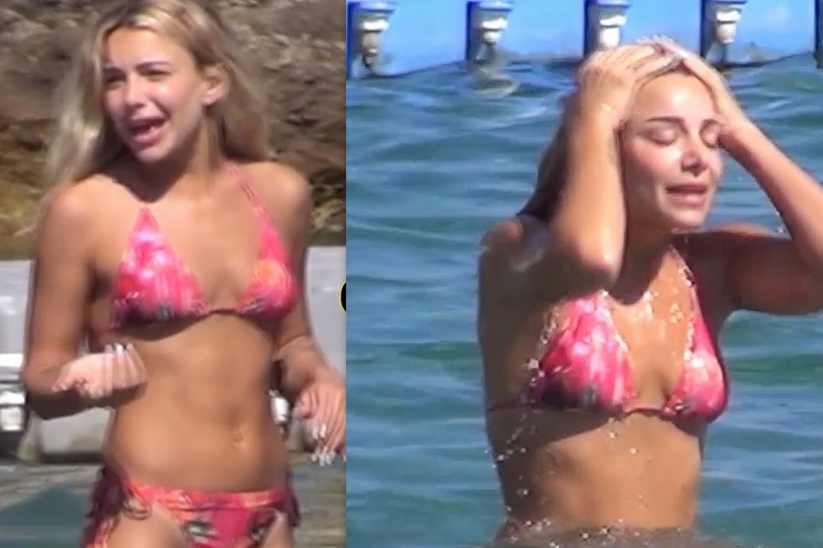 Η τραγουδίστρια φορώντας το μπικίνι της πήγε στην παραλία με την κάμερα του Mykonoslivetv να την απαθανατίζει κατά την παραμονή της στην πλαζ. Έκανε το μπάνιο της παρέα με φίλους και στη συνέχεια απόλαυσε την ηλιοθεραπεία της.