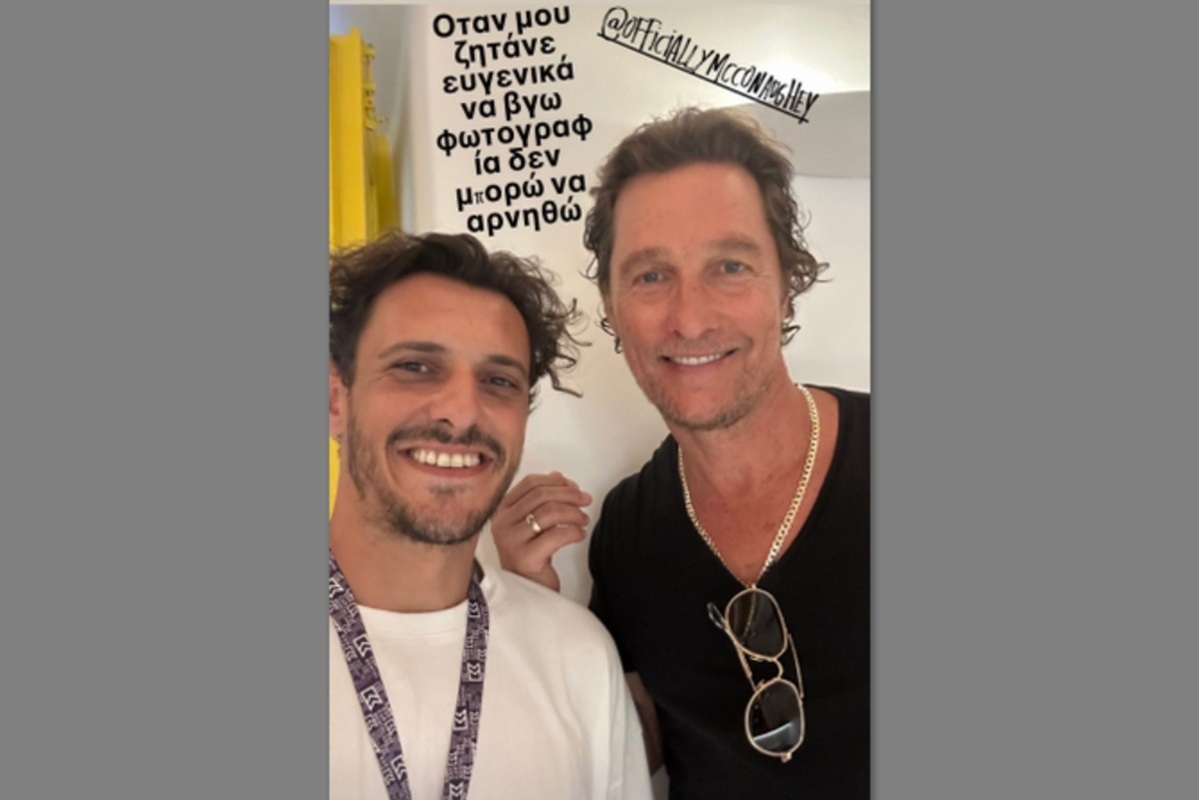 «Όταν μου ζητάνε ευγενικά να βγω φωτογραφία, δεν μπορώ να αρνηθώ» έγραψε ο Ελληνας καλλιτέχνης με χιούμορ στη λεζάντα της ανάρτησής του, που έκανε σχεδόν αμέσως τον γύρο του διαδικτύου. Υπενθυμίζεται ότι στις πρώτες του διακοπές στην Αντίπαρο, πριν από τρία χρόνια, ο Μάθιου ΜακΚόναχι είχε κοντέψει, κατά λάθος, να εμβολίσει με το αυτοκίνητό του μια Ελληνίδα.