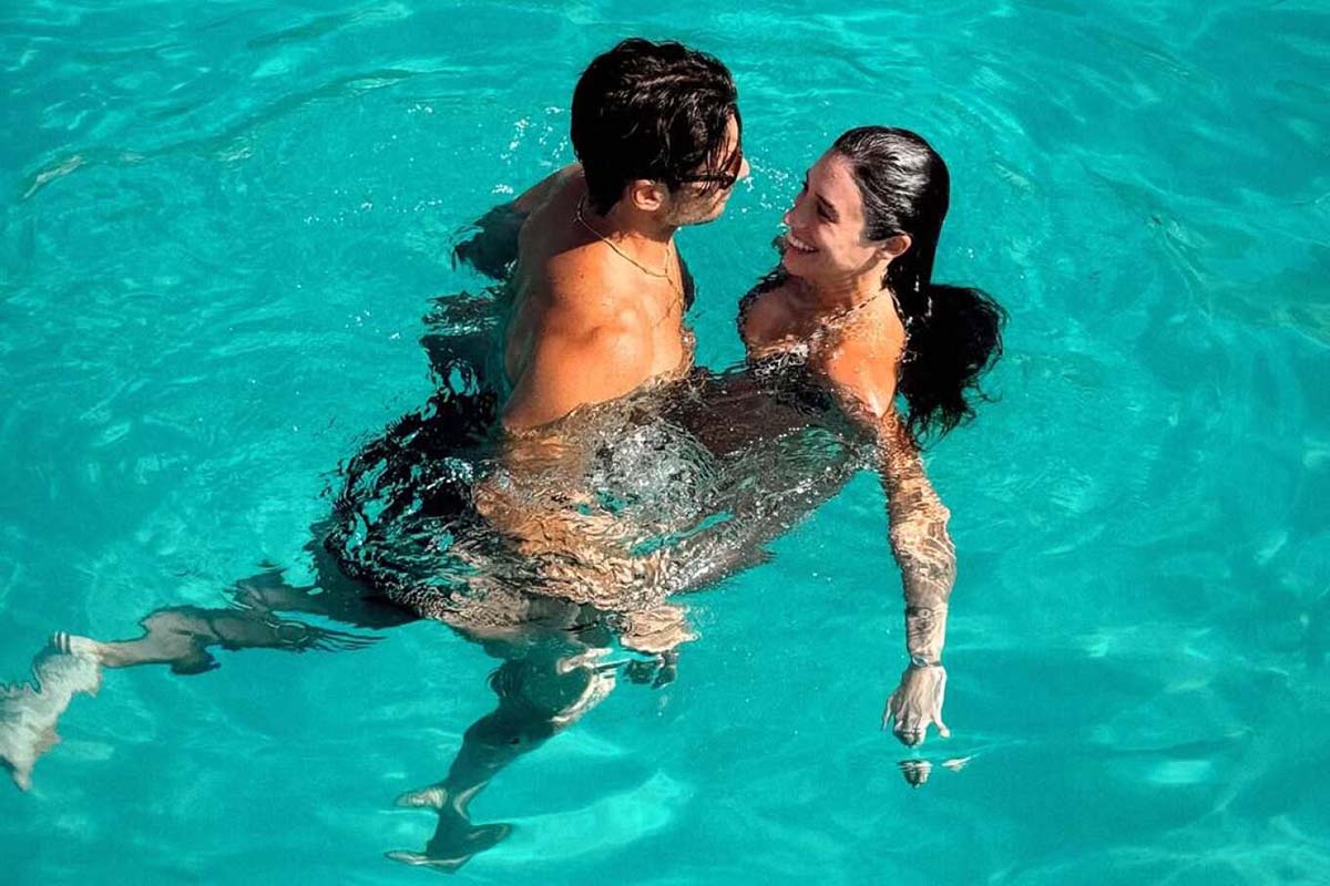 Με φόντο τα κρυστάλλινα γαλαζοπράσινα νερά, αντάλλαξαν παθιασμένα φιλιά και αγκαλιές, αδιαφορώντας για τα αδιάκριτα βλέμματα, δείχνοντας πόσο ευτυχισμένοι είναι ο ένας στο πλευρό του άλλου.