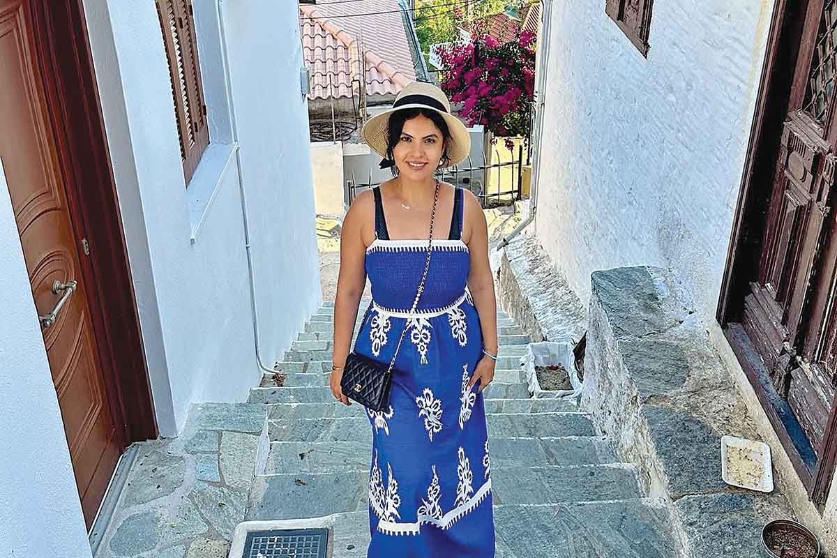 Η Βασιλική Καραγιώργου σε στιγμιότυπο από διακοπές της στην Ελλάδα