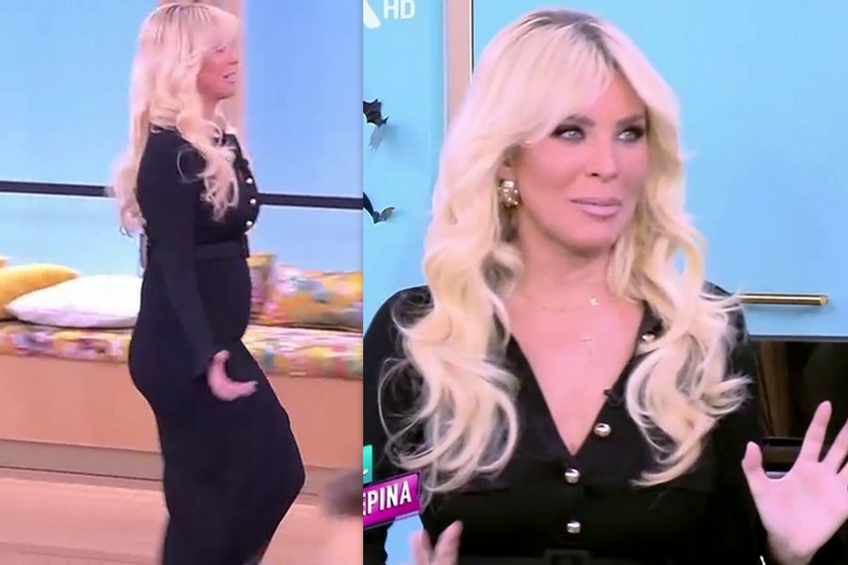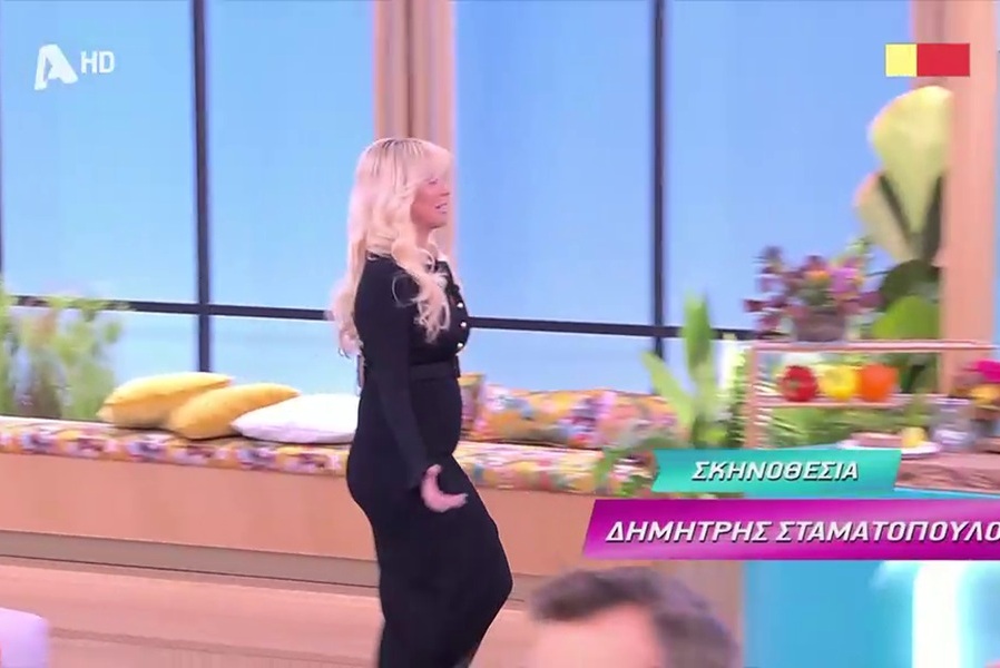 Η Κατερίνα Καινούργιου εμφανίστηκε στην εκπομπή της το πρωί της Τετάρτης φορώντας ένα μαύρο φόρεμα με τη φουσκωμένη της κοιλίτσα να φαίνεται πλέον και πήγε να χαιρετήσει τον σεφ, Πέτρο Συρίγο.