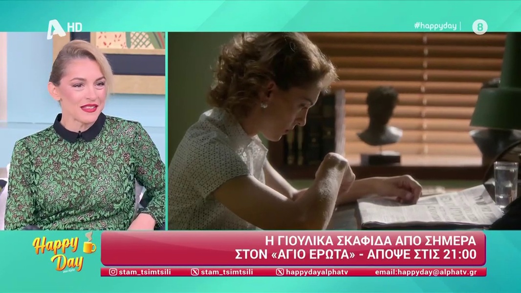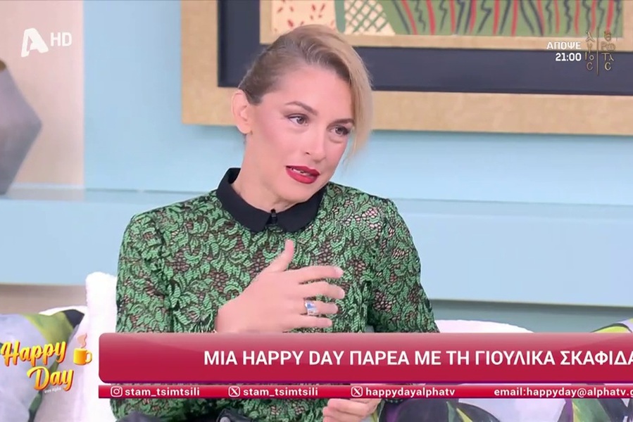 Η Γιούλικα Σκαφιδά φιλοξενήθηκε στην εκπομπή «Happy Day» και αναφέρθηκε στη σειρά «Άγιος Έρωτας», στον γιο της και σε ένα ατυχές περιστατικό που είχε όταν ήταν έγκυος.