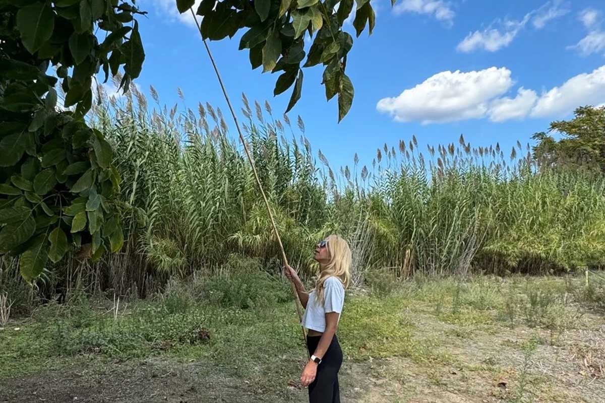 Η παρουσιάστρια της ΕΡΤ επέλεξε για τη βόλτα της ένα μαύρο κολάν παντελόνι συνδυασμένο με λευκό T-Shirt και sneakers και άρχισε τη διαδικασία της συλλογής καρπών. «Ηρθαμε να μαζέψουμε καρύδια» ανέφερε χαρακτηριστικά και μας έδειξε το τελικό αποτέλεσμα της προσπάθειάς τους.
