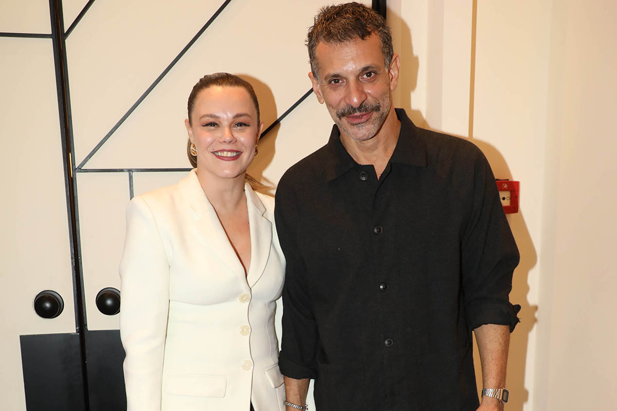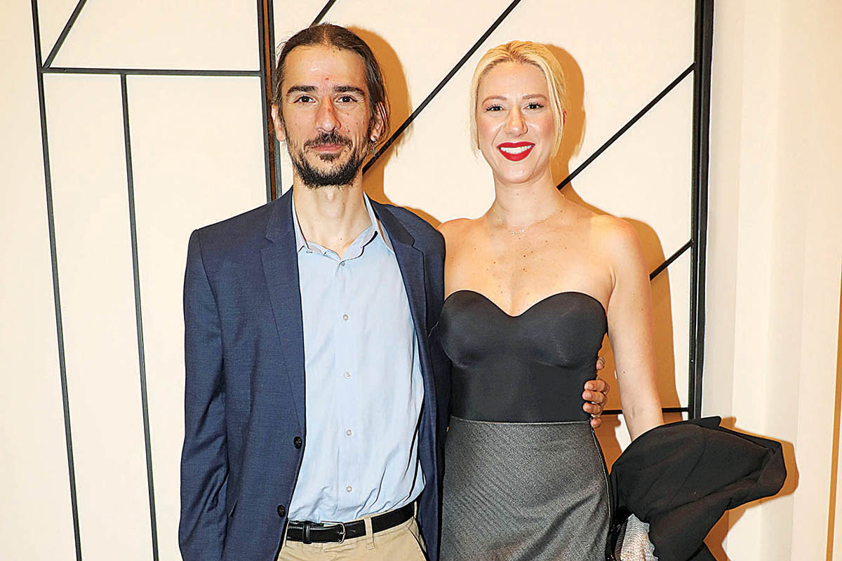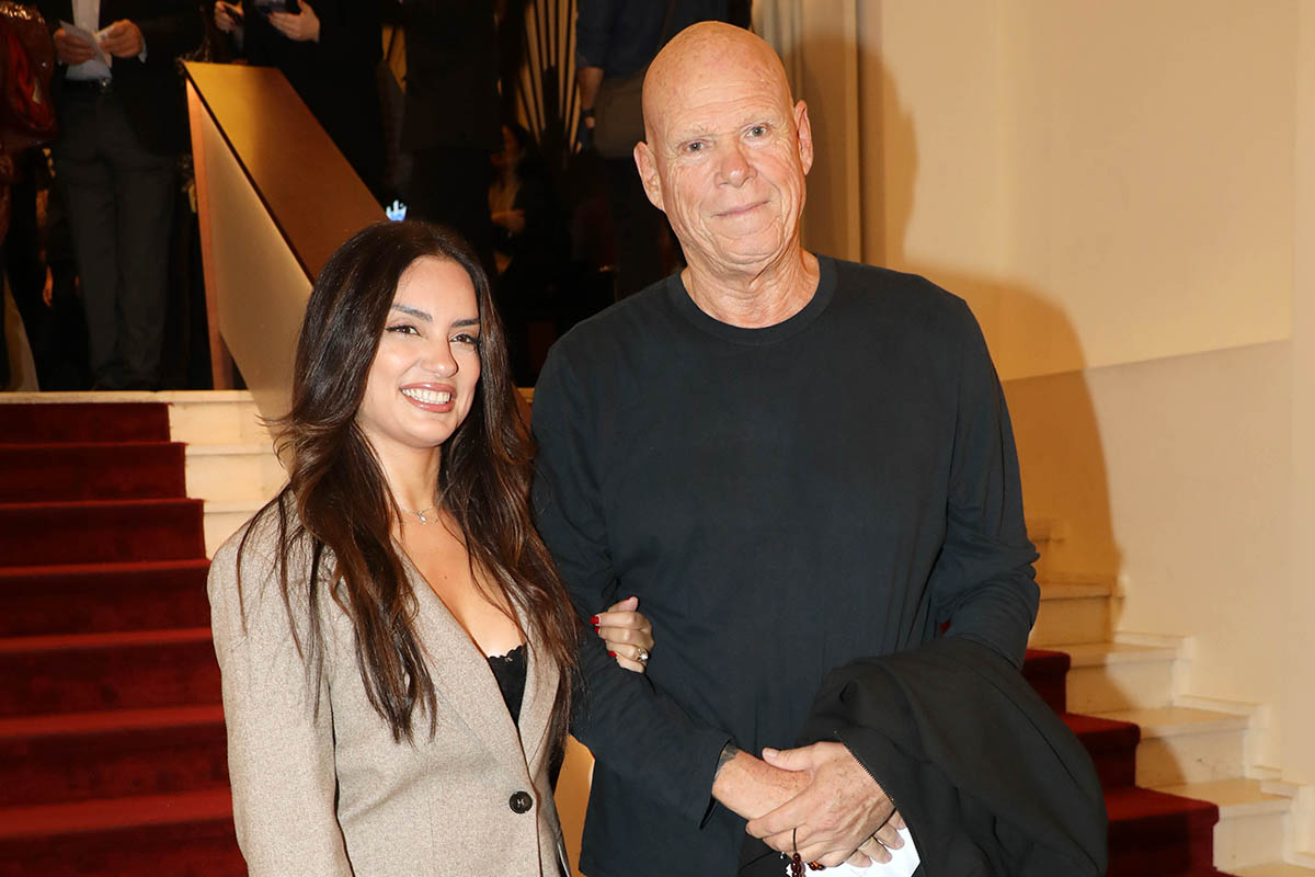 Ο Πέτρος Κόκκαλης αγκαλιά με τη Δήμητρα Ματσούκα στην επίσημη πρεμιέρα της ως «Κόμισσας της φάμπρικας» στο Embassy Theater.