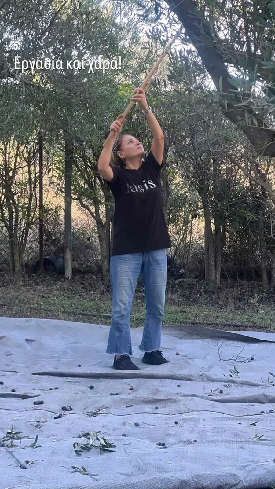 Η ηθοποιός διατηρεί κτήμα με ελιές και μαζί με φίλους πήγαν να τις μαζέψουν για να βγάλουν το λάδι της χρονιάς. «Μαζεύουμε ελιές για να βγάλουμε λαδάκι», έλεγε στο βίντεο που δημοσίευσε στο instagram.
