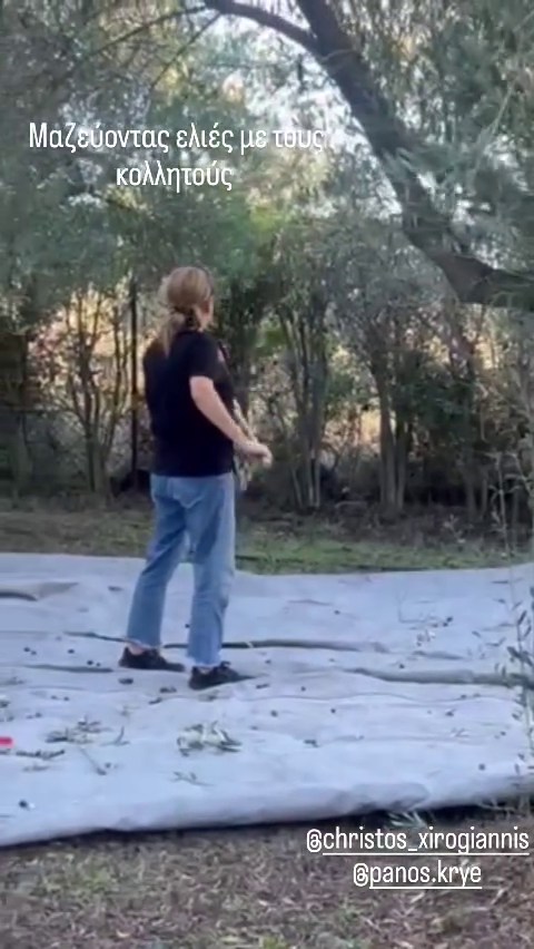 Η ηθοποιός διατηρεί κτήμα με ελιές και μαζί με φίλους πήγαν να τις μαζέψουν για να βγάλουν το λάδι της χρονιάς. «Μαζεύουμε ελιές για να βγάλουμε λαδάκι», έλεγε στο βίντεο που δημοσίευσε στο instagram.