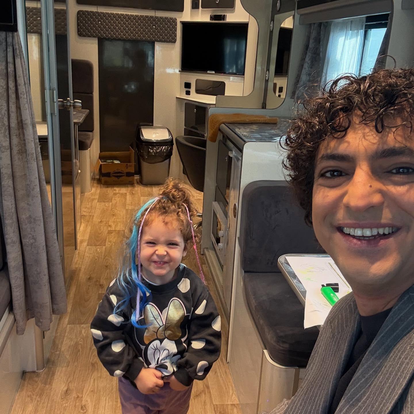 Όταν ο ηθοποιός βρίσκει ελεύθερο χρόνο τον αφιερώνει στα παιδιά του ενώ πρόσφατα πήρε την κόρη του στα γυρίσματα σειράς που παίζει αυτή την περίοδο.