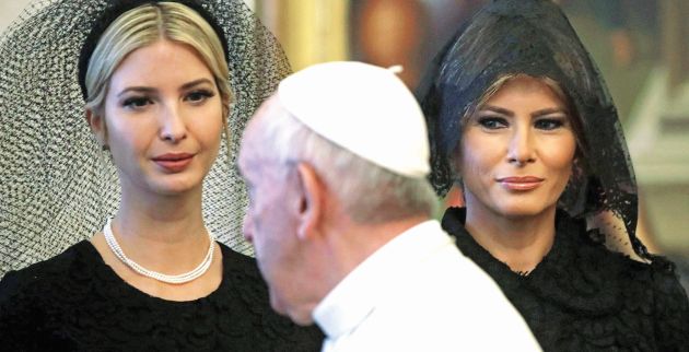 Η Μελάνια και η Ιβάνκα, αντίθετα με ό,τι είχαν κάνει στη Σαουδική Αραβία, σεβάστηκαν απολύτως το dress code που επιβάλλει η επίσκεψη στον Ποντίφικα. Μαύρα μαντίλια, μαύρα μακριά φορέματα και χαμηλωμένα βλέμματα που παρέπεμπαν σε θλιμμένες χήρες. Αυτό το στιλ έβαλε φωτιά στο twitter με σχόλια όπως «να είσαι ντυμένη σαν χήρα χωρίς τα οφέλη».