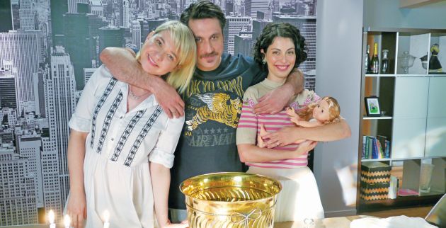 Στο αυριανό επεισόδιο της επιτυχημένης σειράς του Alpha, στις 21.00, θα παρακολουθήσουμε, λοιπόν, «πρόβες» από τη βάφτιση της μικρής Δαφνούλας με νονά την Αθηνά (Μένη Κωνσταντινίδου). Και τι εννοούμε όταν λέμε πρόβες; Ο Διονύσης (Γιώργος Χρυσοστόμου) ανησυχεί αν η Αθηνά θα καταφέρει να αντεπεξέλθει στις υποχρεώσεις του μυστηρίου και αναλαμβάνει να την… προπονήσει. Ετσι, καταμεσής του σαλονιού στήνει μια υποτιθέμενη κολυμπήθρα, παίρνει μια κούκλα και μπαμπάς και νονά κάνουν πρόβα -προκαλώντας πολλά γέλια- ώστε όλα να είναι στην εντέλεια όταν βρεθούν στην εκκλησία.