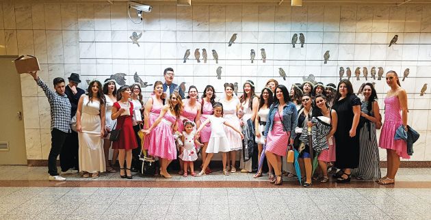 Η νύφη με τις παράνυφες επιβιβάστηκαν στο μετρό για να κατευθυνθούν στο Θησείο, κερνώντας τον κόσμο τσικουδιές και τραγουδώντας το «Σήμερα γάμος γίνεται». Ο φίλος του ζευγαριού Σπύρος Καλός προλόγισε το wedding event, ενώ στη συνέχεια ο δάσκαλος του γαμπρού και σπουδαίος σκηνοθέτης και ηθοποιός Βασίλης Παπαβασιλείου μίλησε για την αγάπη, δανειζόμενος λόγια από το έργο «Ρωμαίος και Ιουλιέτα»!