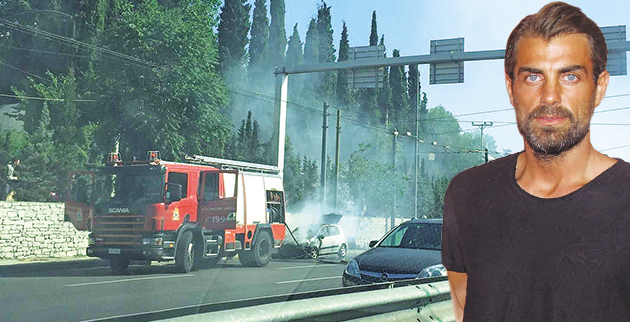 Ηρωική διάσωση μητέρας από τον Στέλιο Χανταμπάκη στη λεωφόρο Κηφισίας, τη στιγμή που το αυτοκίνητό της τυλίχτηκε στις φλόγες.