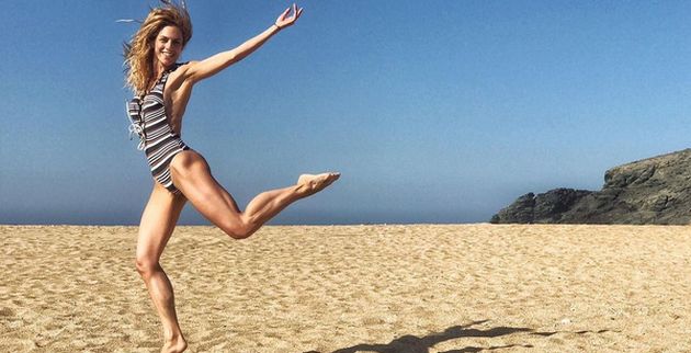 Αρχικά πετάχτηκε μέχρι το Κάπρι και ύστερα εγκαταστάθηκε στη Μύκονο με τους γιους της. Εκεί φωτογραφήθηκε για το Instagram, κάνοντας άλματα στην καυτή άμμο και δείχνοντας το γυμνασμένο κορμί της. Αντίθετα, η Μυρτώ Αλικάκη, που βρίσκεται περιοδεία με την παράσταση «Το ψέμα», βρήκε ευκαιρία να δείξει την ευλυγισία της σαν άλλη… Κομανέτσι, σε κάποια ανάπαυλα. «Μπορεί να είμαστε περιοδεία, αλλά τη γυμναστική μας την κάνουμε» έγραψε η ηθοποιός, η οποία θυμίζει πολύ αθλήτρια ενόργανης γυμναστικής, ακόμη και μπαλαρίνα!