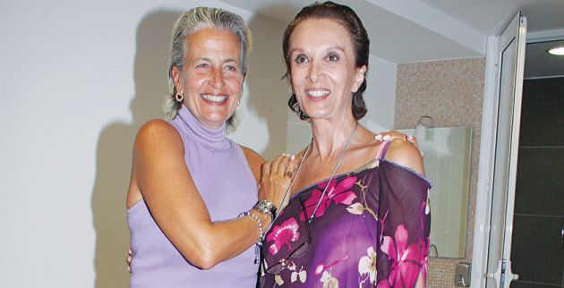 Πιο πολύ σε ανοιξιάτικη παρά σε καλοκαιρινή μάς κάνει αυτή η εικόνα. Η Λουκία Παπαδάκη και η Μαίρη Βιδάλη επέλεξαν το μοβ και τους διάφορους τόνους του για να υποδεχτούν στο καμαρίνι τους φίλους και θαυμαστές.