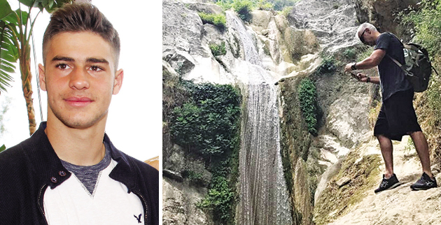 Σε μια από αυτές τις πόζες, λοιπόν, με φόντο τους καταρράκτες της Νικιάνα, ο Αντώνης Νικοπολίδης ανέβηκε σε ένα δύσβατο και λίγο επικίνδυνο σημείο, στην άκρη του βράχου, με τον γιο του Γιάννη, ο οποίος φαίνεται ότι διαθέτει χιούμορ, να του γράφει: